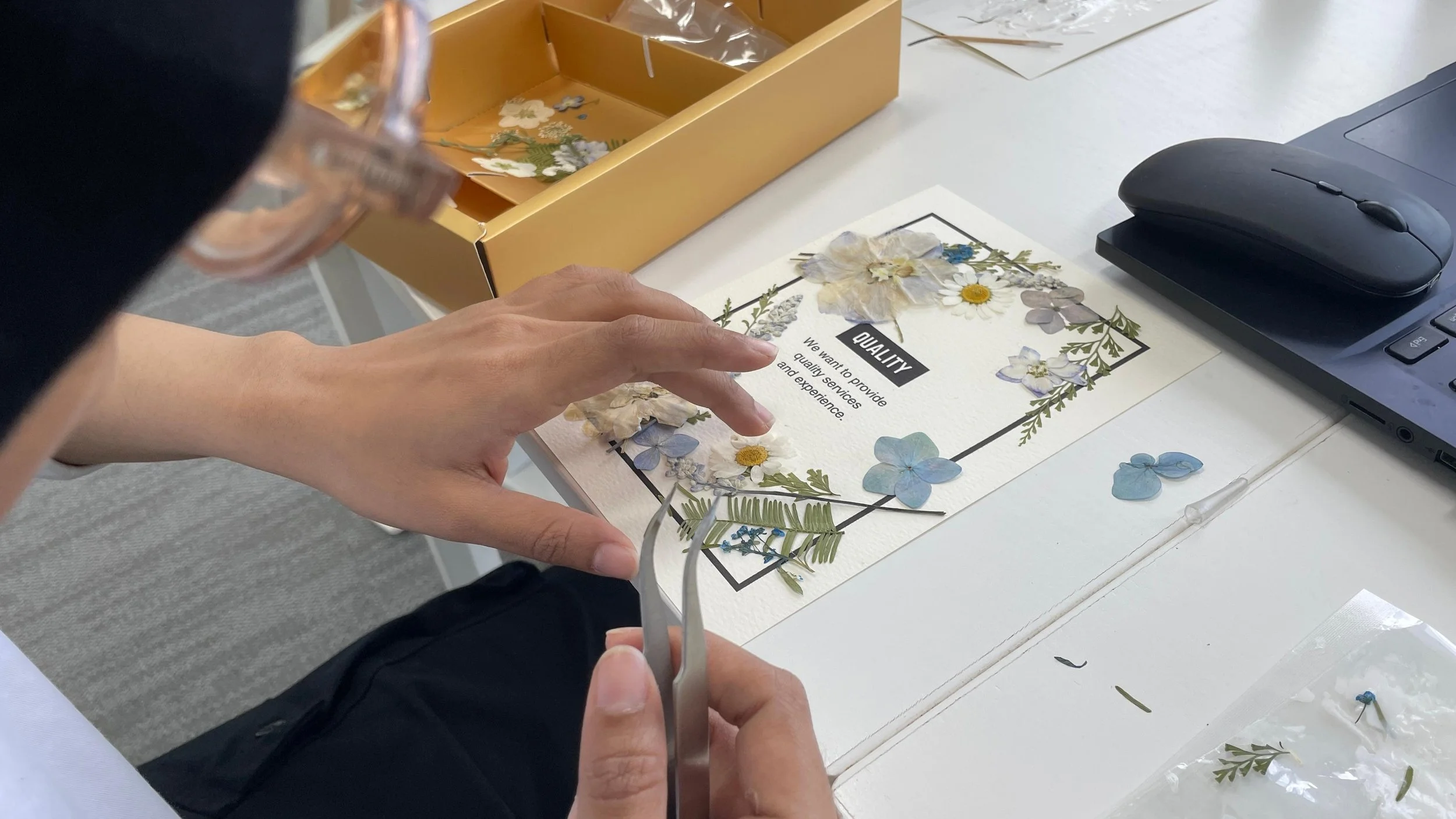 Have you ever wondered about the hidden meanings behind the flowers you see every day? Join us in this therapeutic workshop where you’ll delve into the enchanting world of pressed flowers and botanicals, learning about their unique meanings and symbolism. Guided step-by-step, you'll create a personalized layout that embodies your company’s tagline, core values, or inspirational phrases. This hands-on experience not only nurtures your creativity but also connects you with the deeper significance of each flower, making your final creation a reflection of your brand’s identity.